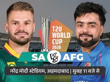 टी-20 वर्ल्ड कप 2026 का 13वां मुकाबला आज साउथ अफ्रीका और अफगानिस्तान के बीच अहमदाबाद के नरेंद्र मोदी स्टेडियम में खेला जाएगा। यह मैच सुबह 11:00 बजे शुरू होगा, जबकि टॉस 10:30 बजे किया जाएगा। दोनों टीमें ग्रुप-डी में शामिल हैं और यह मुकाबला सुपर-8 की रेस के लिहाज से काफी अहम माना जा रहा है।
