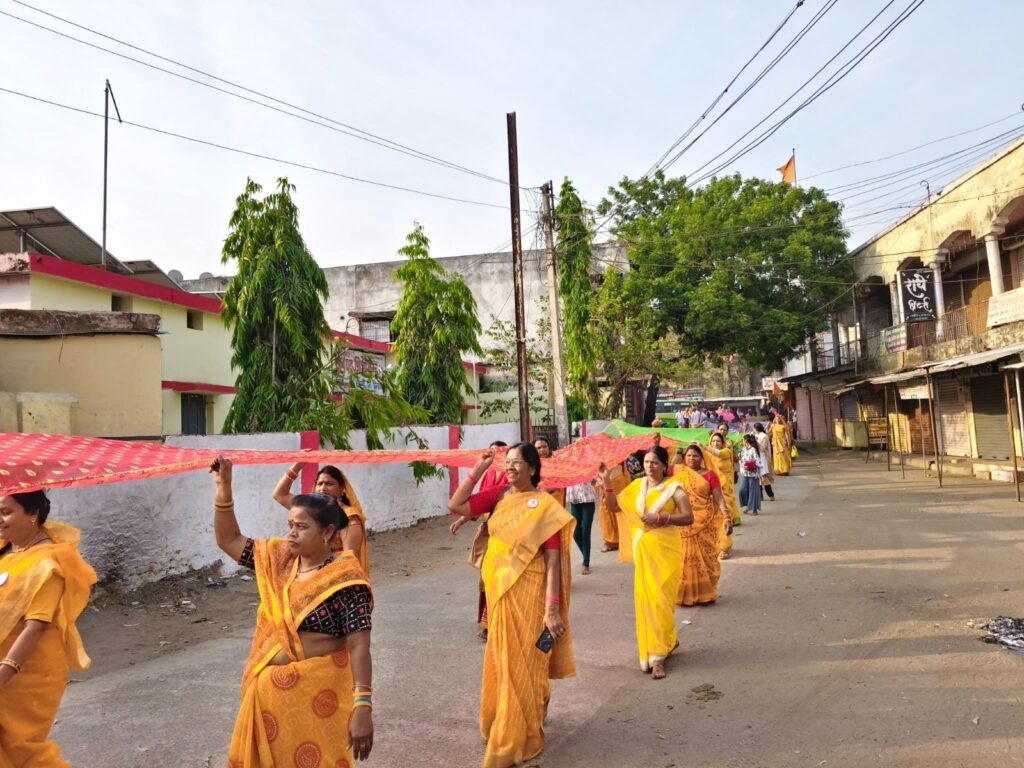 यात्रा में बड़ी संख्या में महिलाओं ने आकर्षक पारंपरिक वेशभूषा में भाग लिया और समाज में महिला शक्ति जागरण का संदेश दिया।
