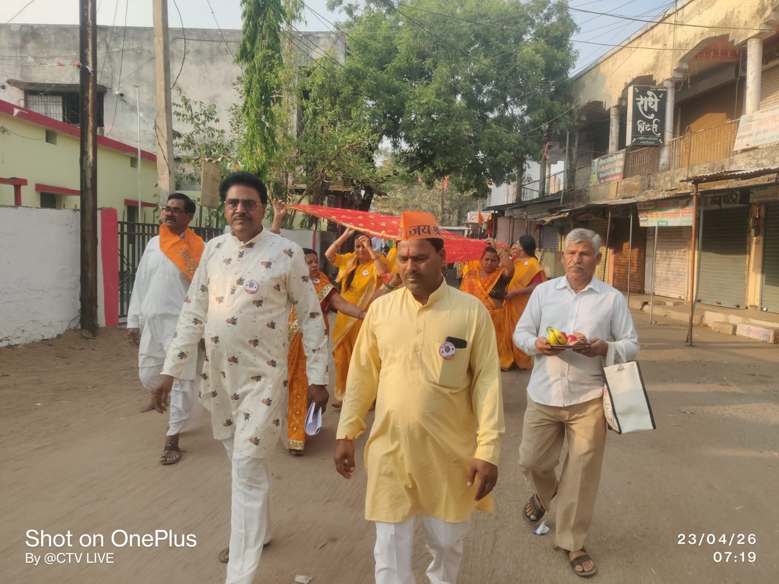 संकीर्तन ग्रुप के सदस्यों द्वारा पहनी गई भगवा टोपी और एकरूप वेशभूषा ने यात्रा को विशेष आकर्षण दिया और एकता का संदेश दिया।