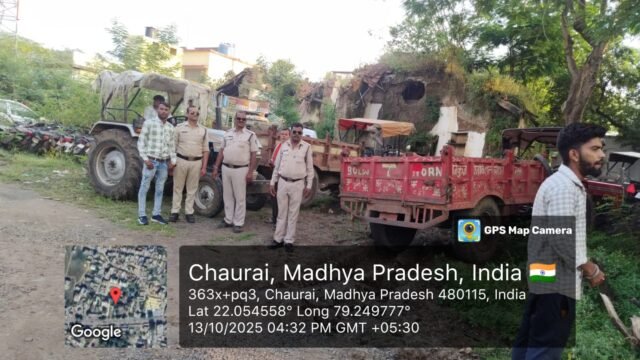 चौरई: चौरई क्षेत्र में बड़े पैमाने पर रेत का अवैध उत्खनन के साथ परिवहन किया जा रहा है बिना रॉयल्टी धड़ल्ले से रेत बेची जा रही है शहर की गली मोहल्ले में ट्रैक्टर की गढ़ गढ़ाहट लोगों को परेशान कर रही है जिसकी की कई बार राजस्व विभाग खनिज विभाग एवं पुलिस को लोगों के द्वारा शिकायत की गई है लेकिन नेताओं के संरक्षण के चलते इन अवैध खननकर्ताओं एवं परिवहन कर्ताओं के विरुद्ध कार्यवाही नहीं हो पा रही है । प्रशासन के द्वारा कई बार कार्रवाई का प्रयास किया गया लेकिन इनको यहां वहां से सूचना मिल जाने के कार्यवाही से बच निकल रहे थे । सोमवार की दोपहर खनिज विभाग के अमले ने चौरई क्षेत्र के ग्राम मुआरी पहुंचकर रेत अवैध उत्खनन स्थल पर कार्यवाही की लेकिन कार्यवाही के पूर्व ही अधिकारियों के आने की सूचना मिलते ही अवैध रेत उत्खननकर्ता मौके से ट्रैक्टर से रेत खालीकर आसपास के खेतों में जाकर ट्रैक्टर को खड़ा कर छुप गए जिसकी जानकारी खनिज अधिकारी को लगी तो खनिज अधिकारी स्नेहलता थाबरें ने ग्रामीणों का सहयोग लेकर उन ट्रैक्टरों को खोज निकाला और मौके से 6 ट्रैक्टर जप्त किया तो वही ट्रैक्टर संचालकों के द्वारा जहां पर रेत खाली की गई है उस स्थान की जीपीएस फोटोग्राफी कर दस्तावेज तैयार किया एवं मीडिया को जानकारी देकर बताया गया है कि मौके स्थल से 6 ट्रैक्टर पकड़े गए हैं और उन्हें कार्यवाही हेतु पुलिस अभीरक्षा में चौरई पुलिस थाने में लाकर खड़ा किया गया है ।