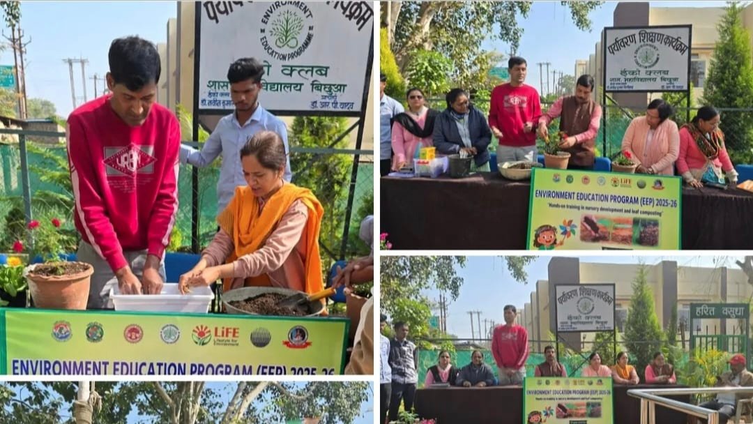 वीर अमर शहीद स्वर्गीय कबीरदास उईके महाविद्यालय बिछुआ में इको क्लब द्वारा पर्यावरण संरक्षण और सतत कृषि को बढ़ावा देने के उद्देश्य से नर्सरी विकास एवं लीफ कम्पोस्टिंग विषय पर आधारित हैंड्स-ऑन प्रशिक्षण कार्यक्रम सफलतापूर्वक संपन्न हुआ। पर्यावरण, वन एवं जलवायु परिवर्तन मंत्रालय भारत सरकार नई दिल्ली एवं पर्यावरण नियोजन एवं समन्वय संगठन भोपाल के द्वारा प्रायोजित पर्यावरण शिक्षण कार्यक्रम के अंतर्गत 16 दिसम्बर 2025 को शासकीय महाविद्यालय बिछुआ में इको क्लब द्वारा नर्सरी विकास एवं लीफ कंपोस्टिंग विषय पर परियोजना कार्य के तहत एक दिवसीय प्रशिक्षण कार्यक्रम आयोजित किया गया । इस अवसर पर महाविद्यालय प्राचार्य डॉ. आर.पी. यादव के द्वारा इस प्रशिक्षण कार्यक्रम में मिशन लाइफ के उद्देश्यों पर विस्तार से जानकारी दी गई । उन्होंने पर्यावरण हितैषी जीवनशैली अपनाने के लिए समस्त ईको क्लब के विद्यार्थियों को प्रेरित किया । प्राध्यापक डॉ.पूजा तिवारी ने जल संरक्षण पर महत्त्वपूर्ण जानकारी साझा की । ईको क्लब प्रभारी डॉ.नवीन कुमार चौरसिया द्वारा इस प्रशिक्षण में प्रतिभागियों को पौधा तैयार करने की वैज्ञानिक विधि, बीज उपचार, मिट्टी मिश्रण, रोपाई तकनीक तथा पौधों की देखभाल की व्यावहारिक जानकारी दी गई तथा विद्यार्थियों ने प्रशिक्षण के दौरान मिट्टी के गमले में पौधों को लगाकर पर्यावरण जागरूकता का सन्देश दिया । कार्यक्रम के दौरान सूखी पत्तियों से कम्पोस्ट बनाने की विधि का प्रत्यक्ष प्रदर्शन किया गया, जिसमें खुले स्थान पर तार की जाली के माध्यम से प्राकृतिक लीफ कम्पोस्ट तैयार करने की प्रक्रिया समझाई गई। विद्यार्थियों को यह भी बताया गया कि किस प्रकार जैविक कम्पोस्ट का उपयोग कर मिट्टी की उर्वरता बढ़ाई जा सकती है और रासायनिक उर्वरकों पर निर्भरता कम की जा सकती है। इस प्रशिक्षण में महाविद्यलय की सहायक प्राध्यापक डॉ.नसरीन अंजुम खान, डॉ.मनीषा आमटे, डॉ. शिवानी सोनी, डॉ.माधुरी पुसे, डॉ.पिंटू पटेल, पर्यावरण मित्र श्री फिरोज उइके, श्री नीलेश उइके, श्री अभय इन्दौरकर, श्री हर्षित गोदेवार, श्रीमती श्रद्धा सहारे, श्रीमती पूर्णिमा मालवीय, श्रीमती प्रियंका उइके एवं स्थानीय नागरिकों ने उत्साहपूर्वक भाग लिया । प्रतिभागियों ने प्रशिक्षण को अत्यंत उपयोगी बताते हुए इसे घर-घर तक पहुँचाने की आवश्यकता पर बल दिया । पर्यावरण संरक्षण की शपथ के साथ प्रशिक्षण कार्यक्रम का समापन किया गया ।