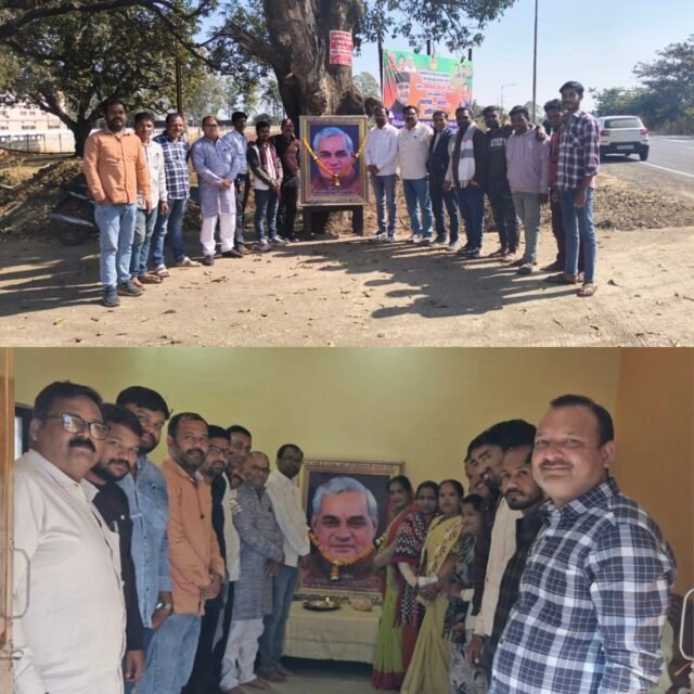 इस अवसर पर भाजपा नगर मंडल अध्यक्ष मदन राय ने कहा कि अटल बिहारी वाजपेई जी का जीवन हम सभी के लिए प्रेरणास्रोत है। उनके विचार और सिद्धांत आज भी समाज और संगठन को नई दिशा देने का कार्य कर रहे हैं उन्होंने कार्यकर्ताओं से अटल जी के आदर्शों को आत्मसात कर राष्ट्रसेवा में निरंतर सक्रिय रहने का आह्वान किया कार्यक्रम में वरिष्ठ भाजपा नेता संजय ठाकुर, उपाध्यक्ष चंद्रावन सोनी, आनंद चौरसिया, गोविंद दन्ताले,ओम नरेश शर्मा, केशव तिवारी,सुमित सराठे, रितु चौरसिया, दीपा राय, कपिल विश्वकर्मा,प्रेम राय,नीरज भावरकर, लालू यादव,अमन साहू, अमन जैन, प्रदुम गार्डे सहित बड़ी संख्या में भाजपा पदाधिकारी एवं कार्यकर्ता उपस्थित रहे पूरे कार्यक्रम का समापन भारत रत्न अटल बिहारी वाजपेई जी के विचारों को जन-जन तक पहुंचाने और उनके बताए मार्ग पर चलकर राष्ट्र निर्माण में योगदान देने के संकल्प के साथ हुआ।